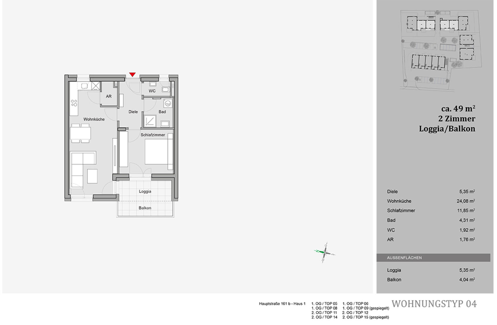Die Wohnungen mit Größen von 49 bis 109 m² bieten vielfältige Wohnmöglichkeiten, angefangen bei kompakten bis hin zu großzügigen Grundrissen. Die Aufteilung auf drei separate Baukörper fördert Individualität, während die Grünanlagen und die Verbindungswege ein nachbarschaftliches Gefühl unterstützen. Die klare und moderne Architektur sowie die Massivbauweise bieten Raum und Geborgenheit. Großzügige Balkone, Eigengärten und Dachterrassen erweitern den Wohnraum und sorgen für grenzenloses Outdoor-Vergnügen.